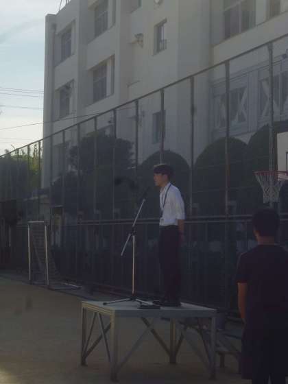 また、新しく来られたICT担当の先生のあいさつと9月の生活目標「規則正しい生活をしよう」のお話がありました。
