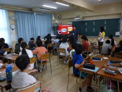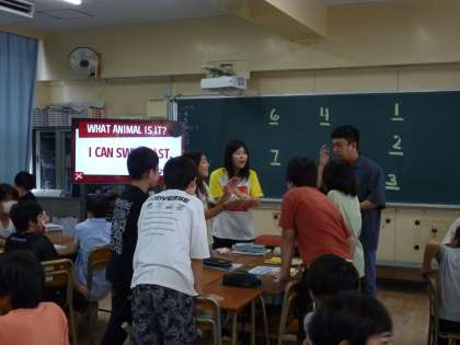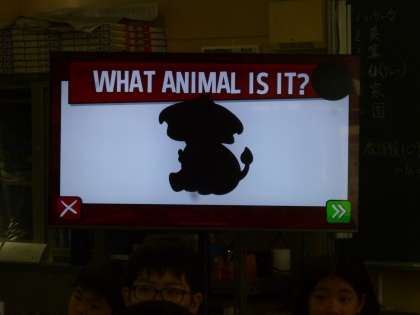 動物のシルエットから「ゾウ」を見つけ、一番速く泳ぐ動物が「サメ」だとわかりました。グループのポイントが加わるたびに歓声が上がりました。