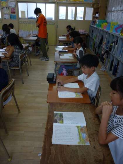 ダムをつくり方の段落を、全員で声をそろえて読みました。出てくる「みずうみ」の意味などを一つ一つていねいに調べていき、内容がよくわかってきました。