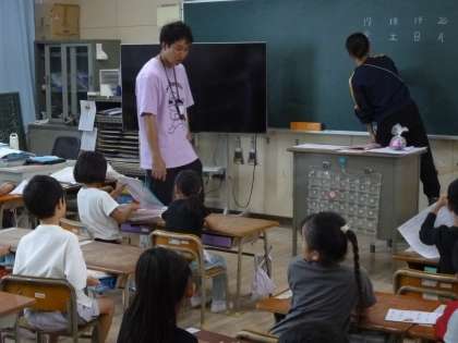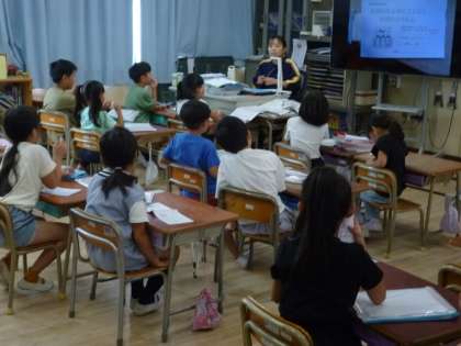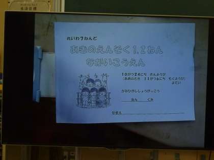 来週24日(金)に実施する1・2年合同の長居公園への遠足について、しおりを見て子どもたちに説明がありました。