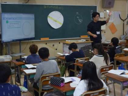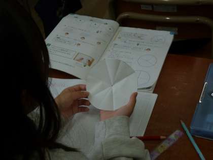 円の用紙を使い、2回半分折ることで中心を見つけることを知りました。