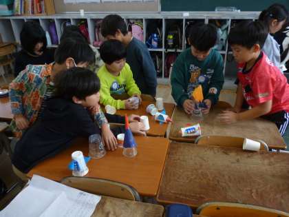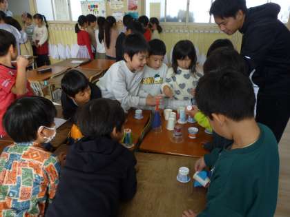 1年生は目をキラキラして、手作りおもちゃを楽しんでいました。