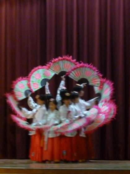 華やかな衣装を着て、扇を使い、花や波などきれいに表しながら踊りました。