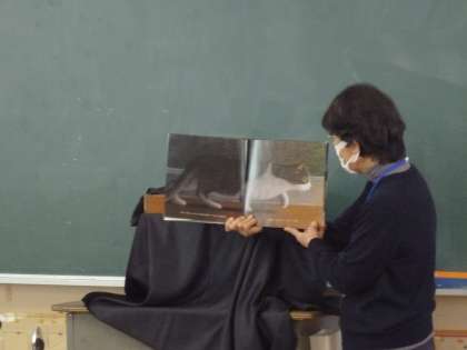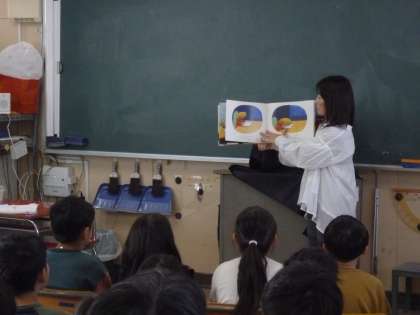 クリスマスやサンタクロースにちなんだ絵本の読み聞かせがあり、話し方のおもしろさから笑いが起こる場面がありました。