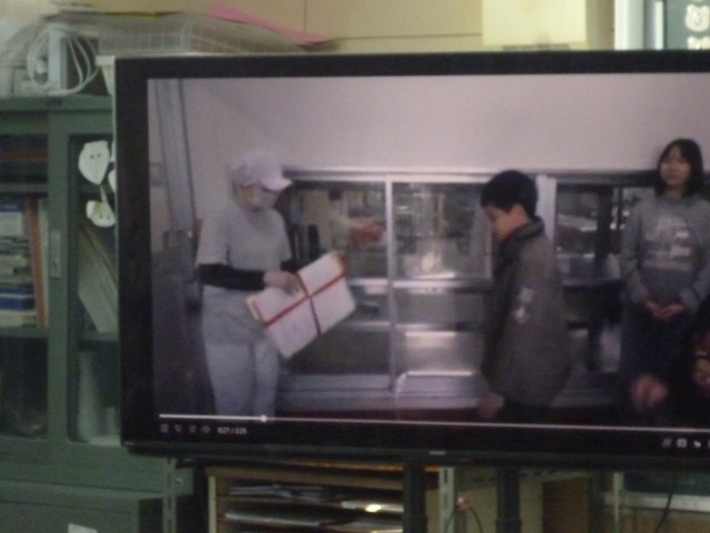 「学校給食の歴史」「給食時のルール」「給食委員会からの発表」の3つの動画を視聴しました。