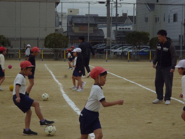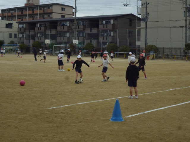 元気よくボールけりグームをしていました。