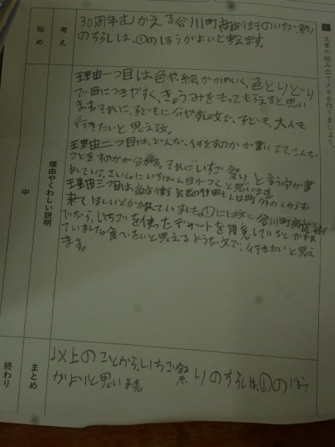 前の学習の組み立てメモ(始め・中・終わり)をもとに、文章を仕上げていきました。