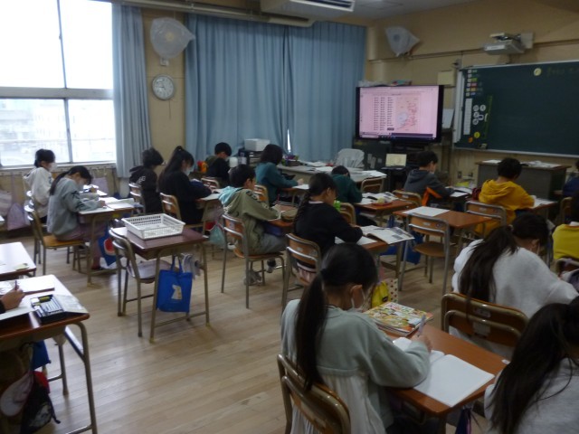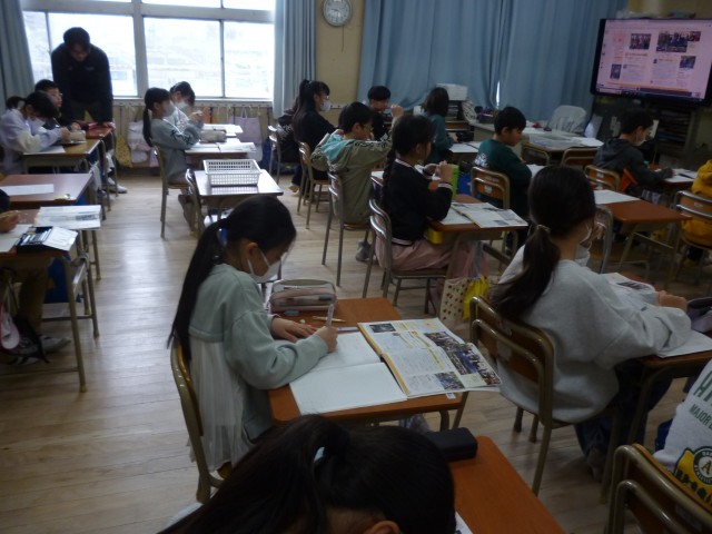 「高校生向けの英語スピーチ大会」の優勝者は姉妹都市アメリカのサンマテオ市でのホームスティをし、市民と交流することがわかりました。ホームスティという言葉はほとんどの児童が初めて知ったようです。また、少年野球チームとの交流などもしていることがわかりました。