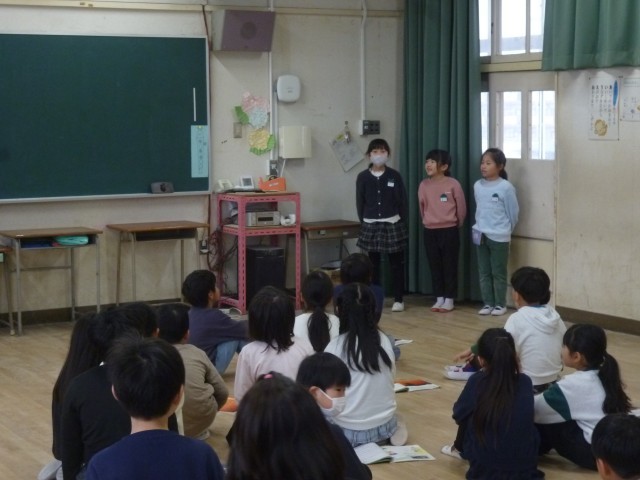 その後、一人・二人・三人とグループをつくり、前に出て夕やけの歌のテストをしました。終わると拍手が起こりました。
