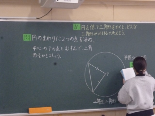 「円を使って三角形をかくと、どんな三角形がかけるか考えよう」