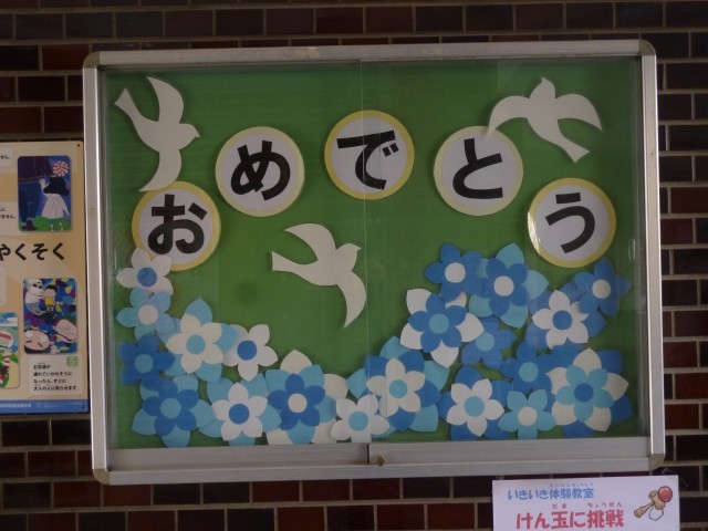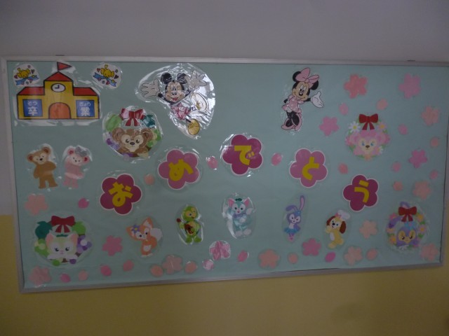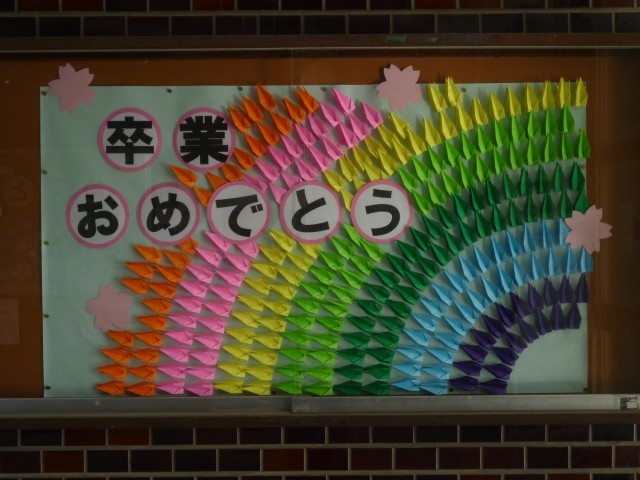 3月18日(水)卒業式に向けてのお祝いの掲示が、校内掲示板に貼られています。