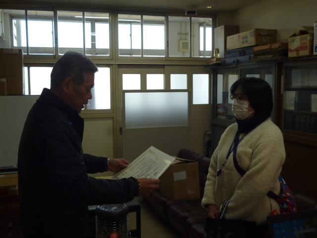 校長室で、図書ボランティアの方への表彰を行いました。おめでとうございます。