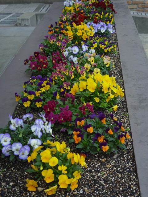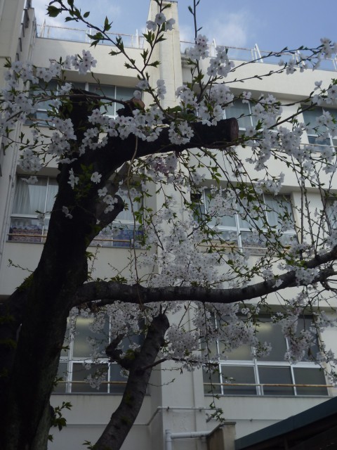 校内の桜の花が満開に咲いています。玄関前の花壇の花もきれいに咲き、春らしい季節がやって来ました。