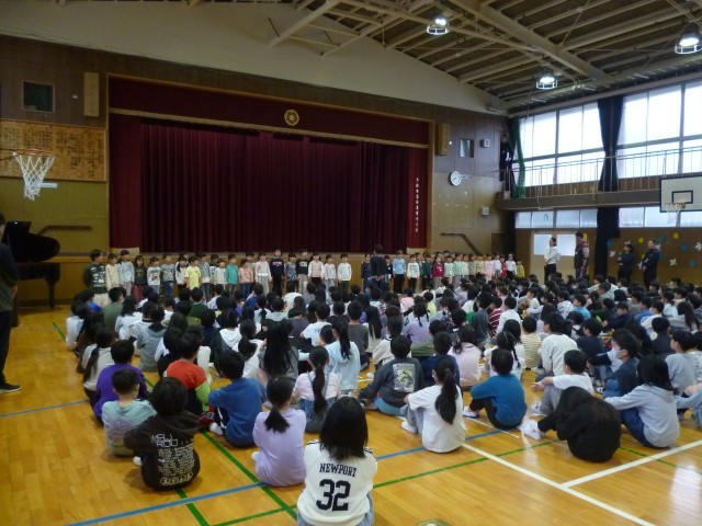 新しく加美東小学校の仲間入りをした1年生を、全校児童で迎える対面式が行われました。