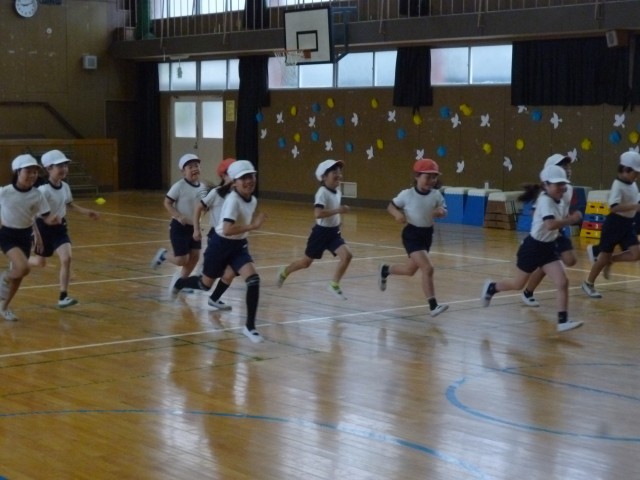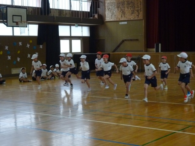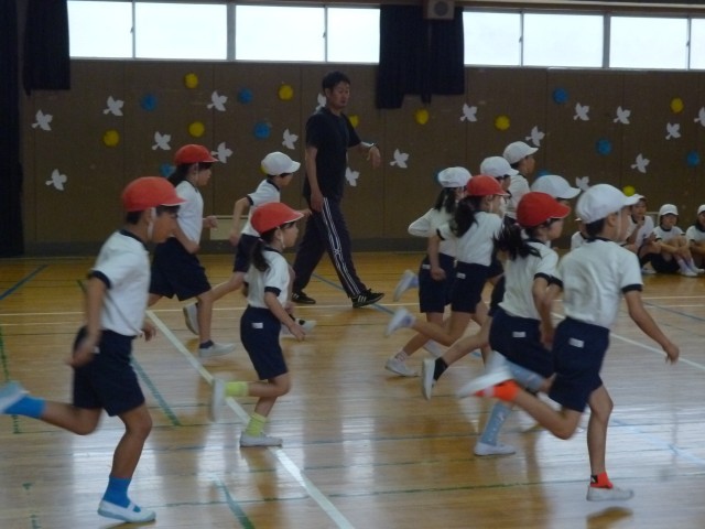 講堂で、スポーツテストのシャトルランを行いました。先生の説明の後、音楽に合わせて走り、最後の一人が残った時は拍手が起こりました。