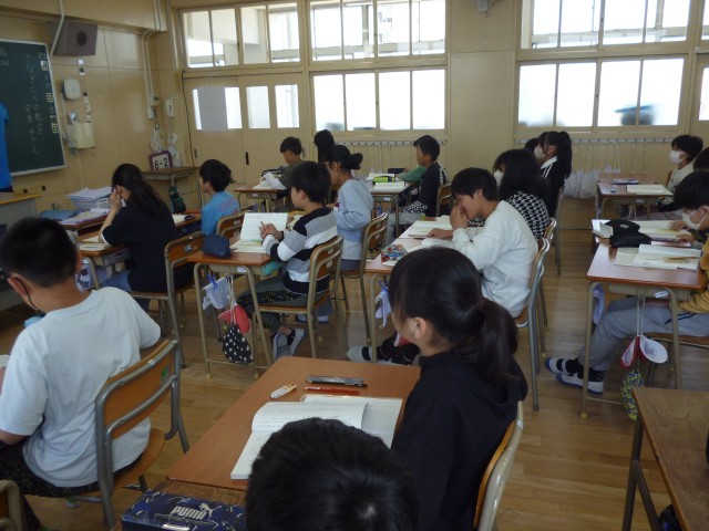 教科書の文章の行動や様子などの内容から気持ちを考える学習をしました。そして、ノートの表にわかりやすくまとめていきました。静かで落ち着いた雰囲気でした。