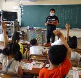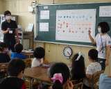 1年生は、道徳の授業で「なにを して いるのかな」というイラスト教材を使った学習...