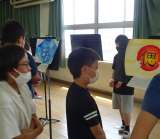 友だちの作品を鑑賞している様子です。 先生から場内アナウンス。 「ここは、加美...
