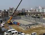 終わりの時間を迎えました。 プールの外から子どもたちの活動を見守っていた施工の現...