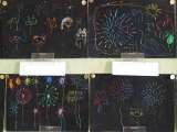 【1年生の作品】 ひっかき絵で描いた「花火」です。