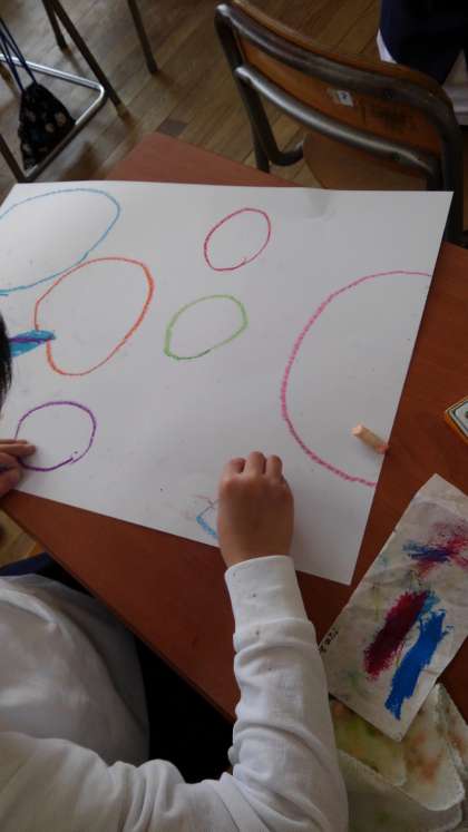 シャボン玉を描いています。