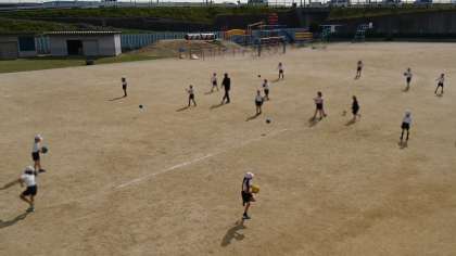 ボールを投げる時のコツを先生に教えてもらい、動きをよくみて、ボールを投げる練習をしました。