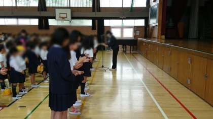 今日の児童朝会では、校長先生から、運営委員、委員会の委員長…それぞれの代表になった人たちが、認証状をもらいました。