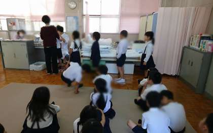 学校耳鼻科医の先生に来ていただいて、耳鼻科検診を行いました。 落ち着いて順番を待っていました。