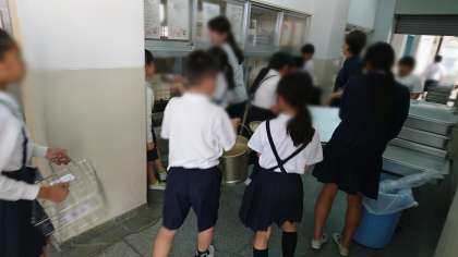 給食委員会の児童は、返却に立ち会って、確認や整頓をしています。
