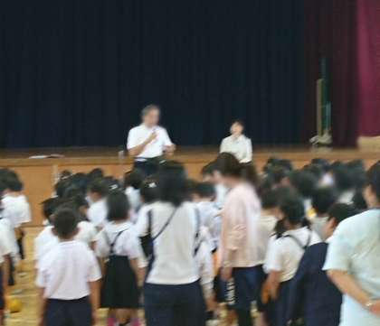 先日からきていただいている、理科の補助員の先生の紹介がありました。前にも来ていただいていることのある先生なので、知っている先生だという反応を見せているこがたくさんいてました。