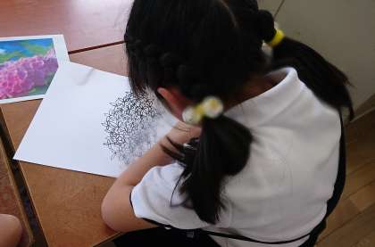 アジサイの花の絵をかきました。