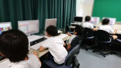 写真は、パソコンクラブの様子です。今日は、名刺作りをしていました。