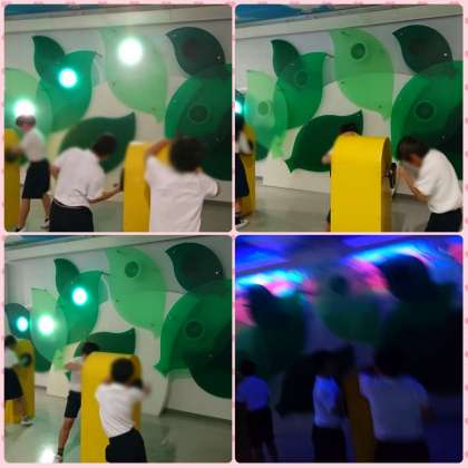 工場見学の後半は、焼却場で作っている電気のように、自分達で発電たいけんをしました。