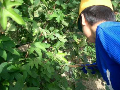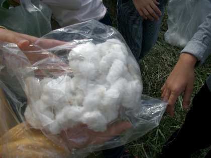 子どもたちはふっくらとした綿をていねいに採りました。