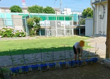 2年 ミニトマトへ水やり