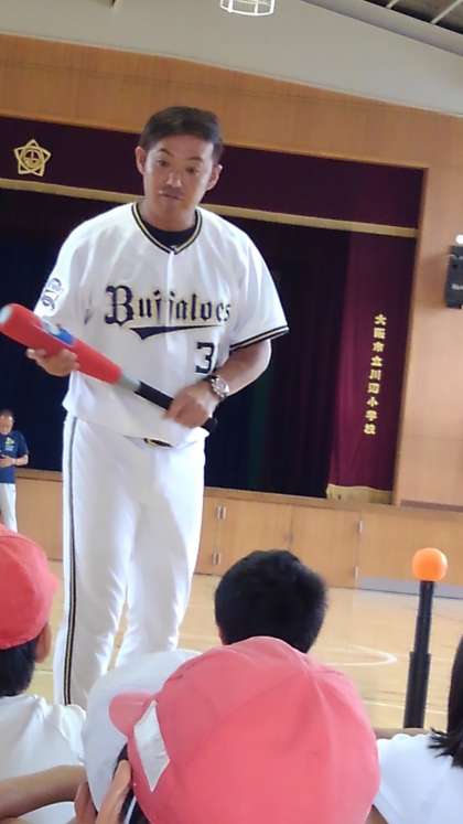オリックスの選手とコーチに、ティーボールを教えていただきました。