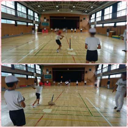 T-ボールの進め方を教えていただいて、ゲームを行いました。