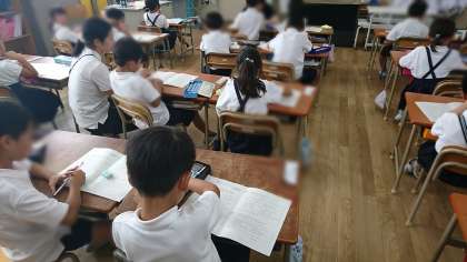 1年生は、まだたくさんの言葉を読んで理解することが難しいので、担任の先生が説明したことを聞きながら、回答していきました。