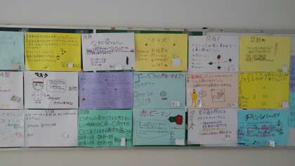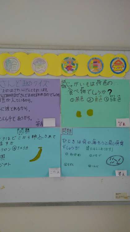 給食室横の掲示板に給食クイズがでています。知っているようで知らないことがあります。