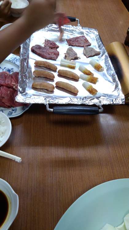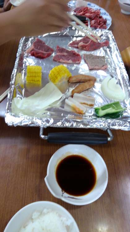 バーベキューをしています。ご飯のおかわりが、とても多いです。