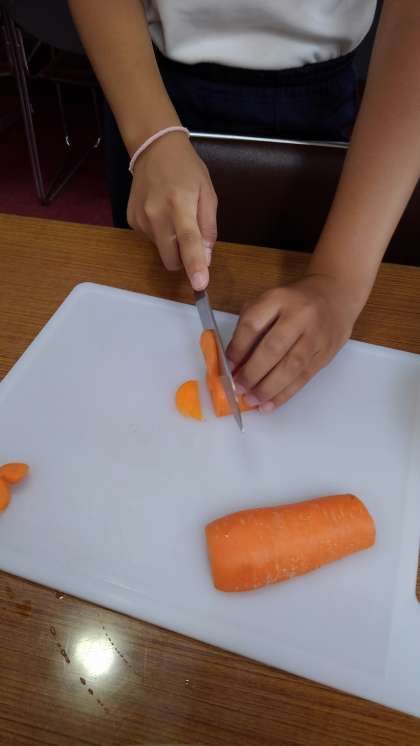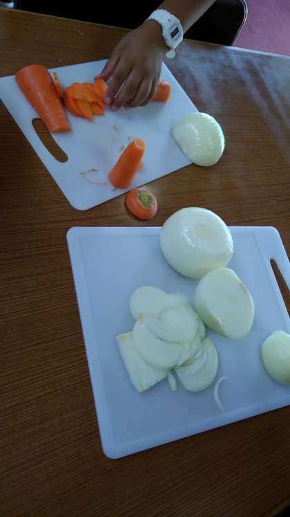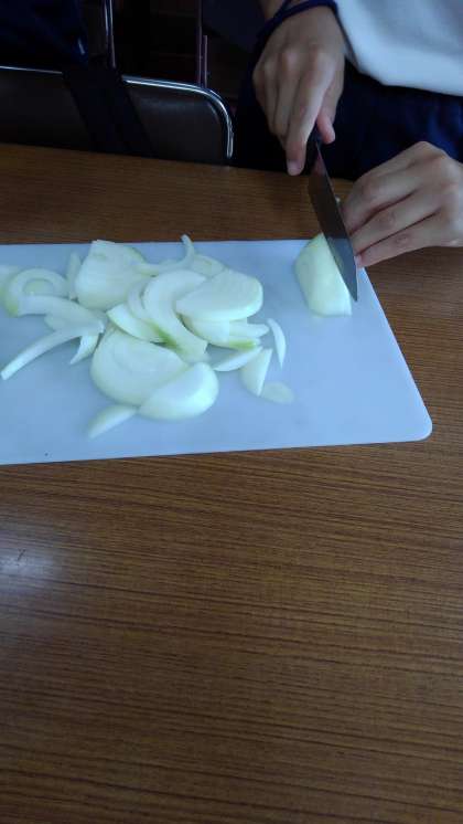 ニンジンと玉ねぎを切ります。