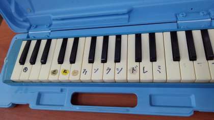 けんばんハーモニカを練習しています。