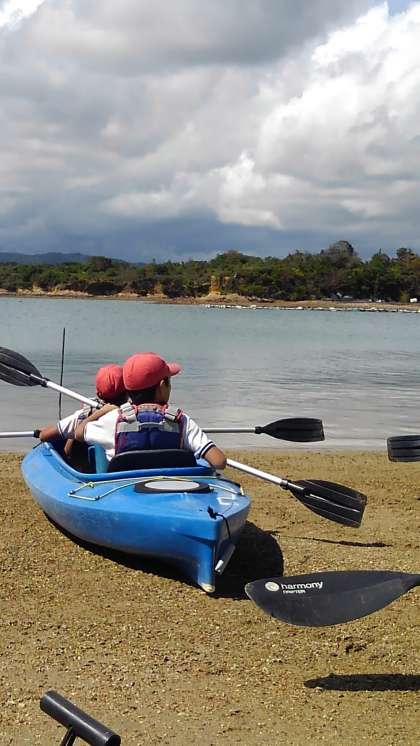カヤックで疲れたのか、子どもたちは、布団に入りました。