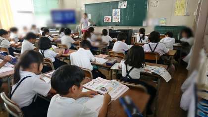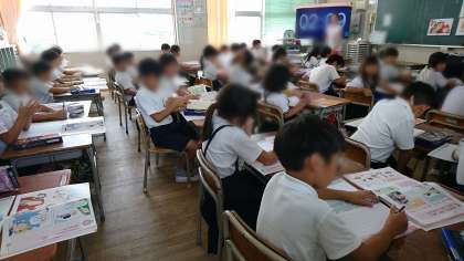 話の内容をみんなでまとめて、自分の考えをノートに書きました。