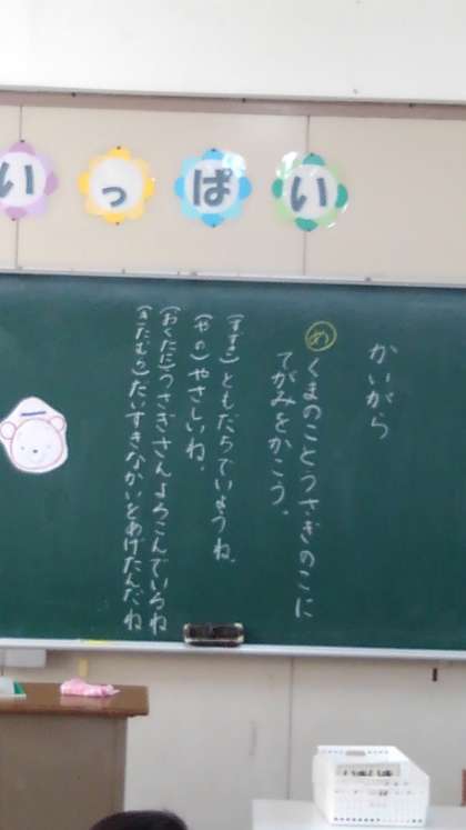 かいがらの単元です。くまの子にお手紙を書いています。