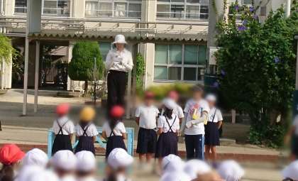 9日の児童朝会で、校長先生からふわふわ言葉を集めていこうという話がありました。たくさん見つけた人が、この日の朝会で紹介されました。
