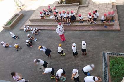 2年生は、1年生との練習をした後、中庭で、友だちと見せ合いながら、ダンスの練習をしました。
