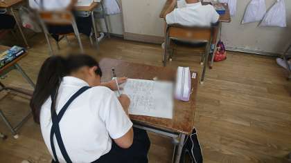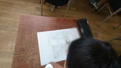 テストをして、学習の振り返りです。思い出しながら、漢字を書いています。