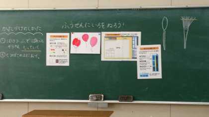 1年生は、学校で初めて、自分の絵の具セットで絵の具を使って、かきました。