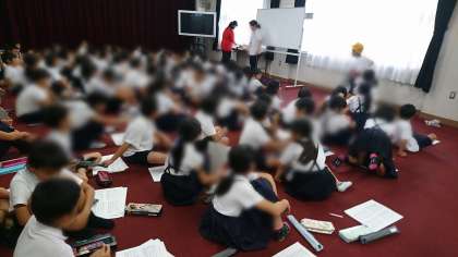 みんなが集まって、練習する曲と、練習の進め方について、先生から話を聞きました。